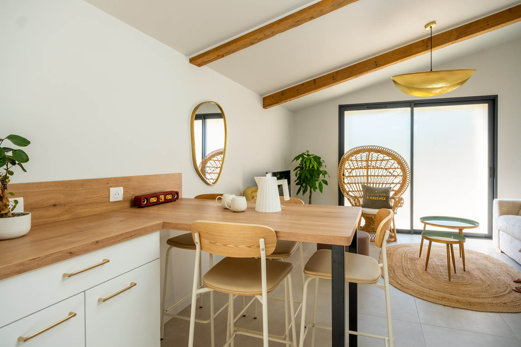 À l’intérieur, le gîte de plain pied offre un espace de vie chaleureux et lumineux. L’accès à une terrasse privative permet de profiter des soirées d’été, de moments de détente et de convivialité.